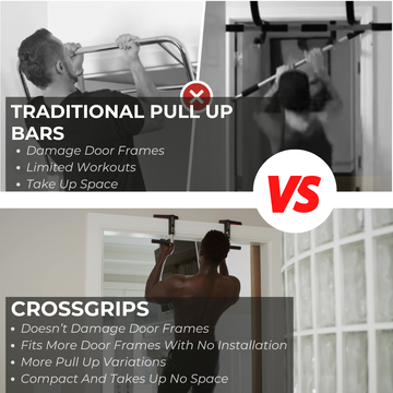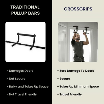 Unlike bulky pull-up bars that require installation or leave marks on your walls, CrossGrips provides a secure, stable, and portable solution. It’s designed for durability, versatility, and ease of use—giving you an effective upper-body workout anytime, anywhere.